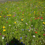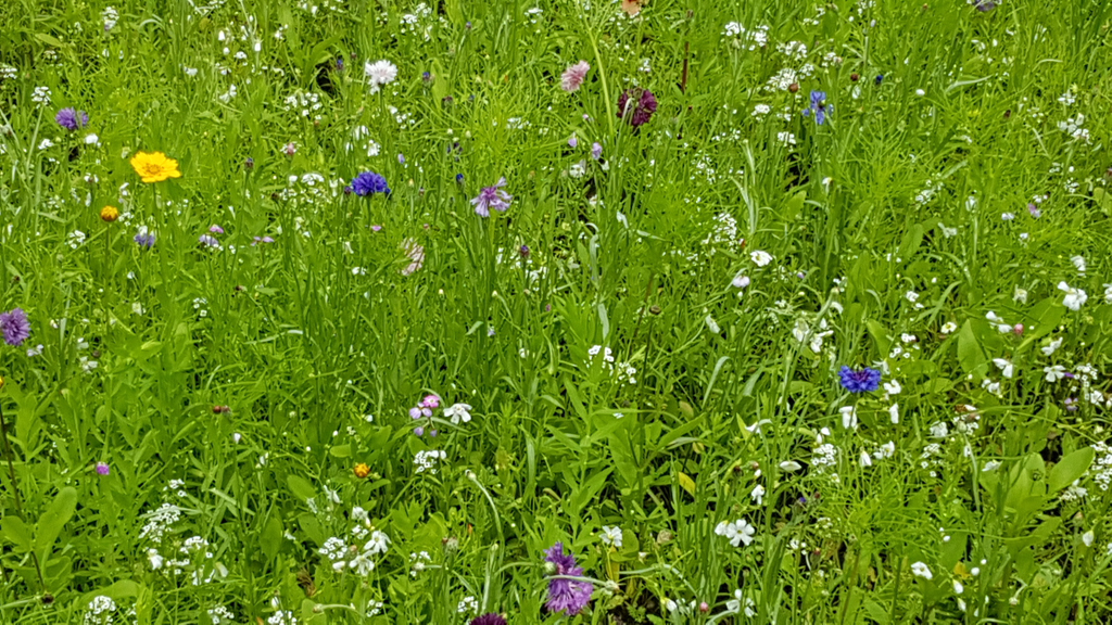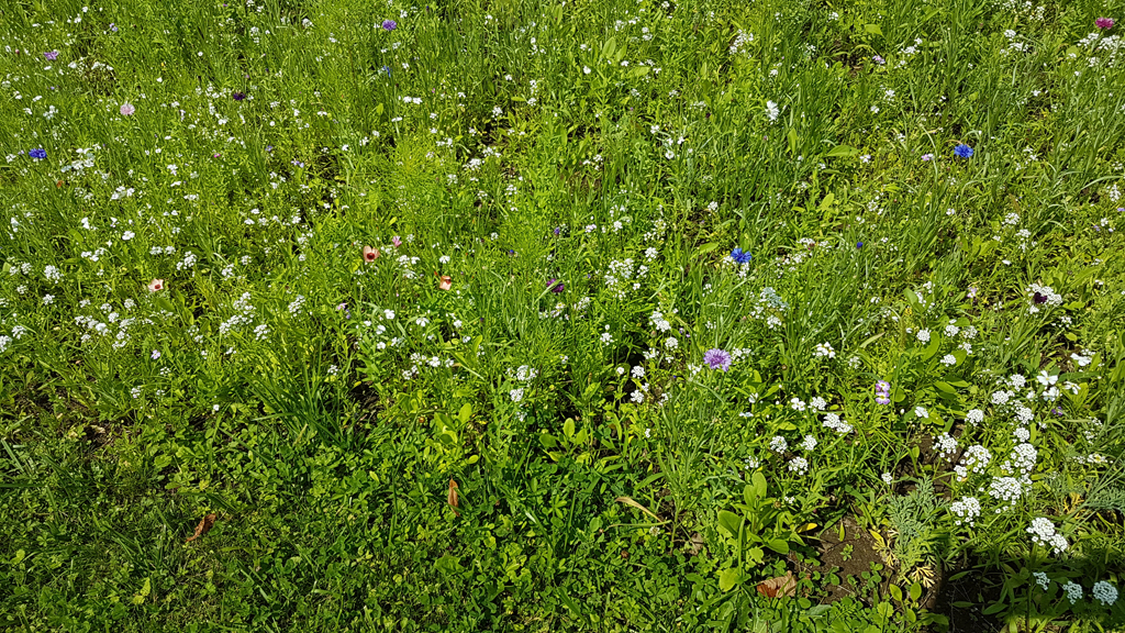 Nun steht die Wiese vor Sankt Cäcilia in voller Blüte … und lockt auch schon die ersten Bienen an …